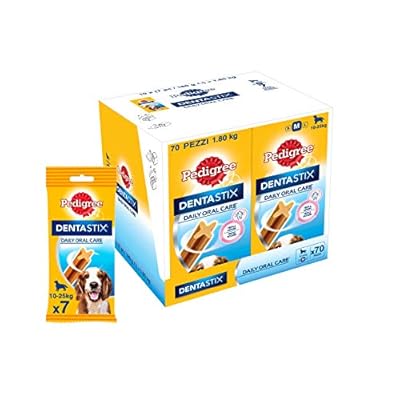 Pedigree Dentastix Snack per l’Igiene Orale (Cani Medi 10-25 kg), 180 g – Confezione da 7 Pezzi (7 x 10 Pezzi, Totale 70 Pezzi)
