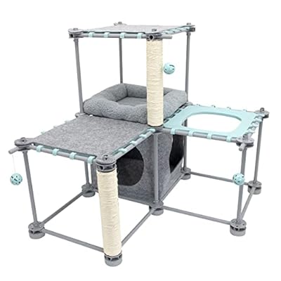 Kitty City, cuccia per gatti grande, cubo impilabile, cuccia da interni, tiragraffi e cuscino, grigio (CM-10035-CS01)