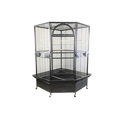 Pet’s Solution – Gabbia Angolare per Pappagalli, Voliera Robusta per Uccelli Grandi, con Posatoi, Ciotole, Vassoi Estraibili e Ruote, Nera – 128x128x186 cm
