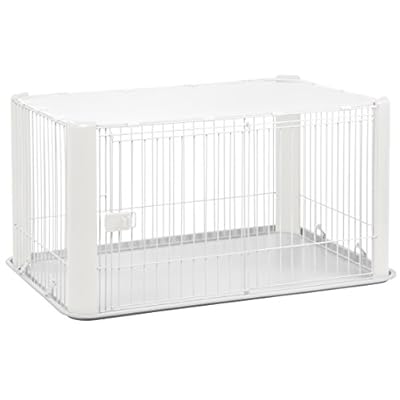 Iris Ohyama Box per Cuccioli/Recinto Interno con Tetto Rimovibile e Porta Scorrevole con Serratura – Modello Pet Circle CLS-1130, Bianco