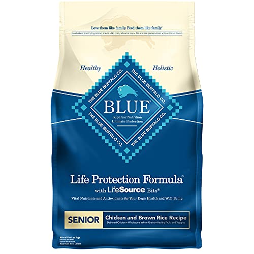 Contiene una (1) confezione da 30 libbre di blue life protection formula senior dry dog food, pollo e riso integrale.