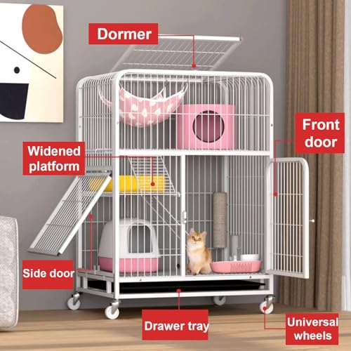 Gabbia per Gattini Robusto Trasportino per Gattini di Metallo, Gabbia Gatti da Interno con Ruote Universali Facile da Spostare 2 Colori 5 Dimensioni(White,78 * 54 * 100cm)