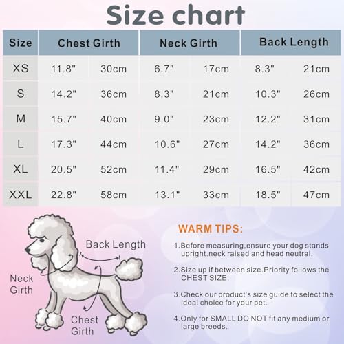【Piccole dimensioni dell’animale domestico per cani e gatti di medie dimensioni】Comfort cucciolo vestito è adatto per adattarsi alla maggior parte degli animali domestici di piccole e medie dimensioni cani gatti cucciolo cagnolino Chihuahua Yorkie Toy Poodle. Ci sono 6 taglie: XS, S, M, L, XL, 2XL. Si prega di controllare la tabella delle taglie e misurare il vostro animale domestico attentamente prima di ordinare per garantire una migliore esperienza di usura.