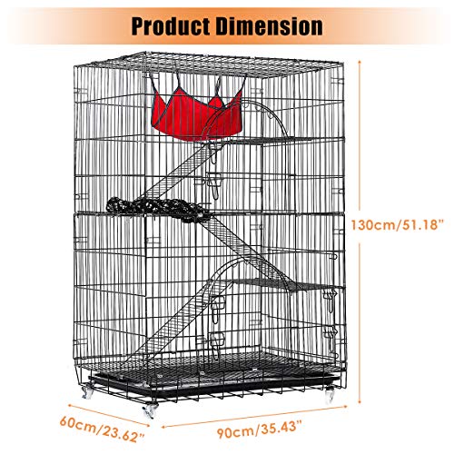 Pawgiant gabbia per gatti a 4 livelli offre un ampio spazio per i tuoi felini. Con dimensioni di 90 cm (lunghezza) x 60 cm (larghezza) x 130 cm (altezza), questa gabbia a 6 livelli è ideale per gatti vivaci che amano arrampicarsi, saltare ed esplorare. Perfetta per 3-5 gatti che giocano insieme. Adatta anche per piccoli animali domestici come porcellini d’India, furetti, conigli e cincillà.