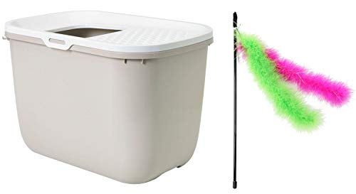 Questa pratica lettiera per gatti Hop In è la soluzione ideale per mantenere la tua casa pulita e offrire al tuo felino uno spazio confortevole. Inclusa nel set, una divertente canna da pesca per gatti per intrattenerlo.