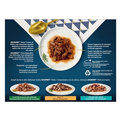 Cibo per gatti purina gourmet perle “Trionfo di Salsa” nel pratico formato da 10 confezioni da 8x85g.