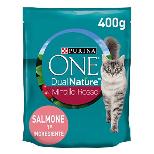 Purina One Gatti Dualnature con Mirtillo Rosso: crocchette con salmone come primo ingrediente.