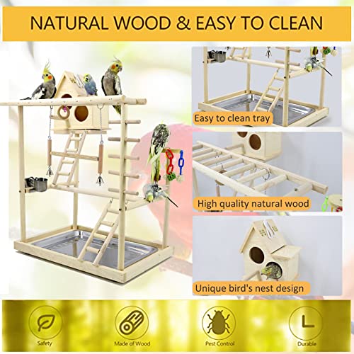 Questo supporto per uccelli è più di una semplice piattaforma: è un vero e proprio parco giochi che include scale, altalene e mangiatoie. Permetti al tuo uccello di esprimere la sua natura, giocare fuori dalla gabbia, passeggiare e interagire con te, mantenendolo sano e riducendo lo stress.