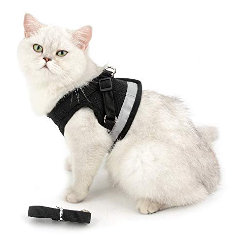 SELMAI Pettorina Gatto con Guinzaglio Riflettente, Imbottitura Morbida, Imbracatura Regolabile No Pull per Cani di Piccola Taglia, Cuccioli (XS, Nero) – Ideale per Kitten, Chihuahua, Yorkie