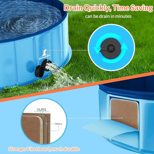 【Fondo antiscivolo e resistente all’usura】–Il fondo del piatto doccia per animali ha la struttura antiscivolo e resistente all’usura sulla superficie.Può impedire a cani e bambini di scivolare e rende la piscina più resistente.