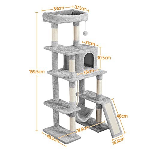 Materiali di qualità: la torre per gatti è costituita da truciolato E1, peluche, corde di sisal, tubo di carta, plastica e ferro. È ricoperta da un comodo peluche che mira a fornire al gatto un comfort extra. L’intera struttura è stabile e sufficientemente robusta per consentire al gatto di saltare e giocare.